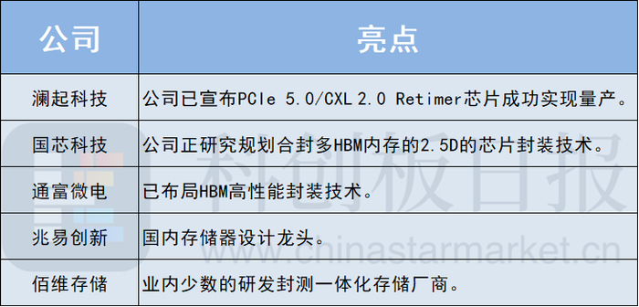 据《科创板日报》不完全统计,A股已有澜起科技、国芯科技、通富微电等厂商有相关技术布局。