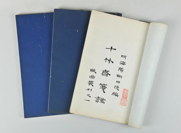 《十竹斋笺谱》是崇祯十七年(1644)刊行的拱花木刻彩印的画集,运用当时流行的“饾版”、“拱花”之术,使彩色套印木刻版画的艺术水平走向新高峰。后传统木刻艺术每况愈下,奄奄一息。有鉴于此,鲁迅与郑振铎于1934年托荣宝斋重刻《十竹斋笺谱》。