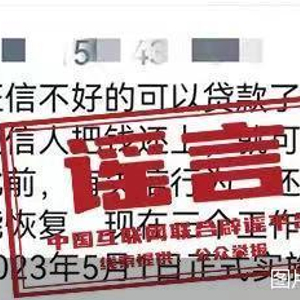“这一谣言内容显然是属于误读,混淆了个人征信与信用信息修复的概念。”易观分析金融行业高级咨询顾问苏筱芮指出,谣言传出一方面可能源于用户对个人征信、信用信息的了解有所欠缺;一方面也可能是不法分子,包括围绕个人提供贷款、债务协商的中介人员,通过误导或是蹭热点的方式,吸引消费者的关注。