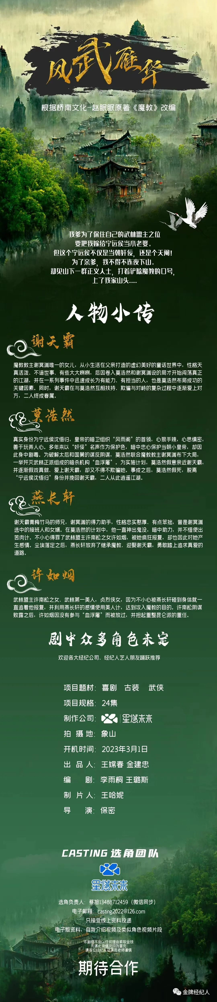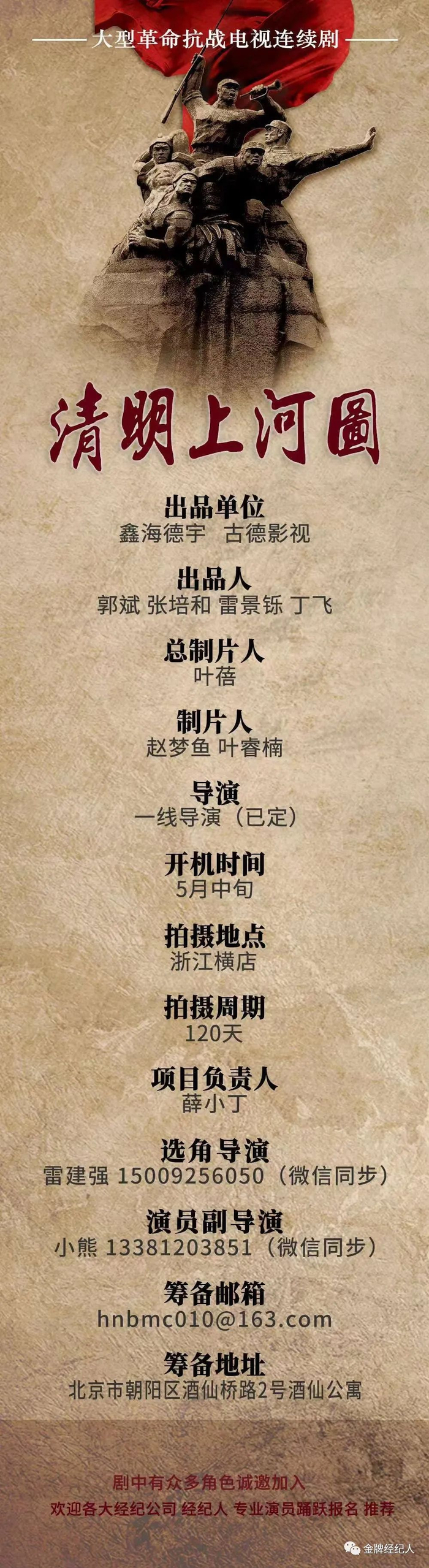 本栏目组讯由小编采集并供业内参考交流使用,信息内容如有变化请根据实际情况核实。各大剧组如有组讯发布,可以联系金牌经纪人,协助扩散!