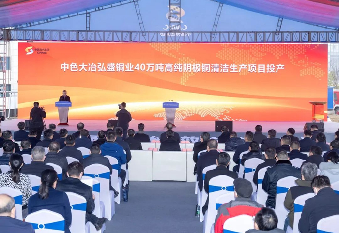 14日,中色大冶弘盛铜业40万吨高纯阴极铜清洁生产项目举行投产活动。中国有色矿业集团有限公司党委书记、董事长奚正平讲话并颁发项目建设特别奖。市委书记郄英才现场宣布项目正式投产。市委副书记、市长吴之凌讲话。
