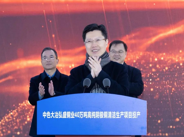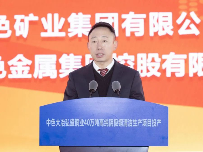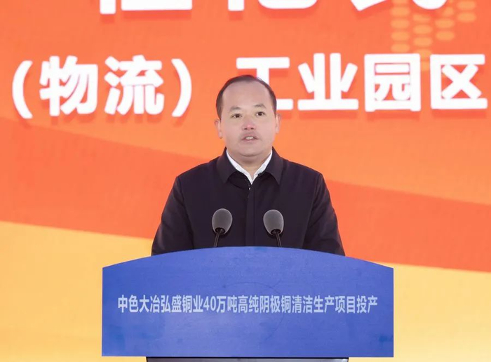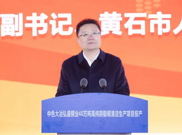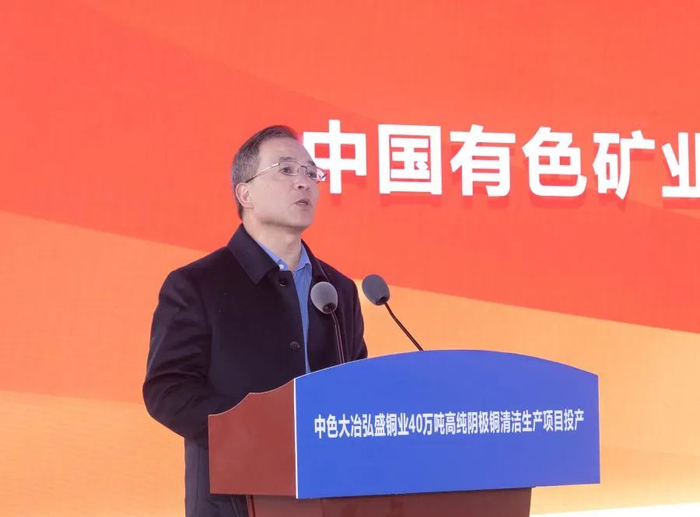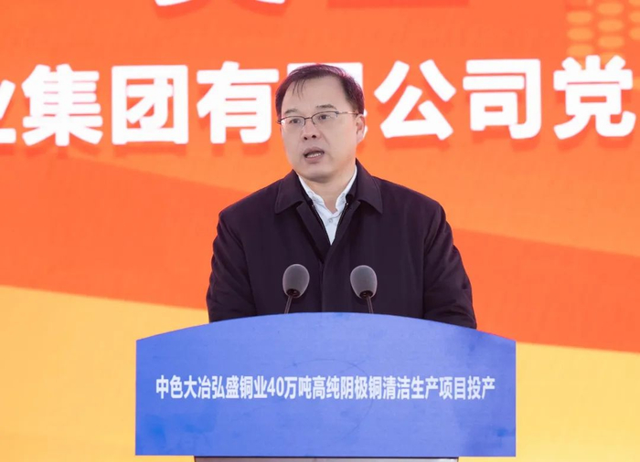 奚正平代表中国有色集团向黄石市委市政府、各位领导和合作伙伴长期以来给予中国有色集团和中色大冶的关心和支持表示衷心感谢。他表示,弘盛铜业40万吨高纯阴极铜清洁生产项目正式投产,吹响了迈向铜产业第一方阵的前进号角。中色大冶要接续奋斗、砥砺奋进,以安全生产为契机、强化管理为基础、改革创新为抓手,早日实现满负荷正常运营,全面夺取项目达产达标的新胜利;要力求最佳、做强做优,发挥头雁效应、对标世界先进,着力打造世界先进水平的铜冶炼项目新标杆;要不忘初心、牢记使命,以绿色高质量发展彰显央企的责任担当。