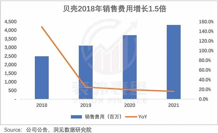 而贝壳当年为了快速撬动门店加盟,大规模投放了广告,销售费用增长了1.5倍。
