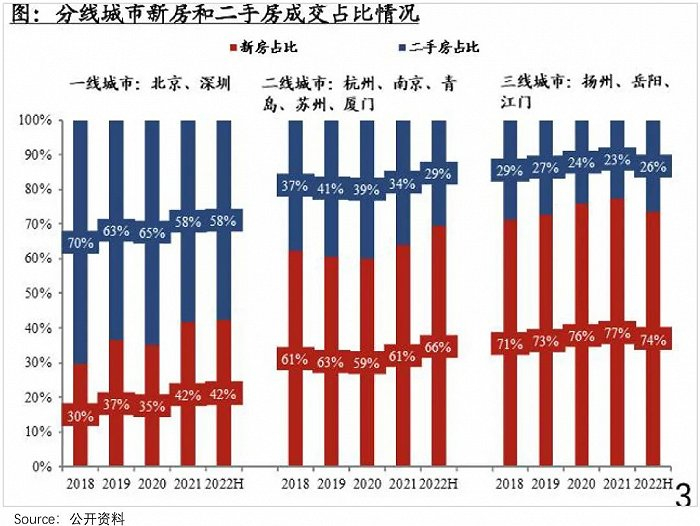 但回到低线市场可以看到,市场本身的需求有限:三线城市二手房成交占比不超过30%。而且贝壳“不打折”的佣金制度,跟价格敏感的五环外用户并不匹配。