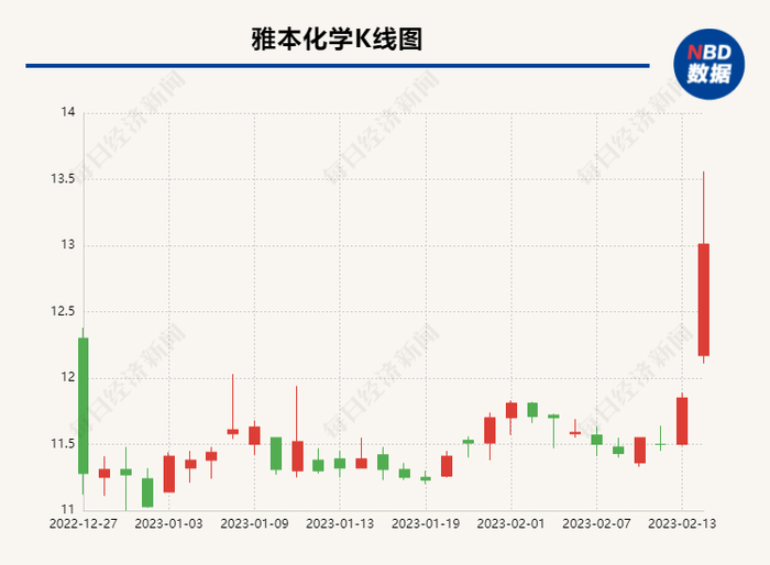 NMN再次成为市场热点,近两日相关概念股持续走强。截至2月14日收盘,金达威(SZ002626,股价24.87元,市值152亿元)实现两连板,雅本化学(SZ300261,股价13.01元,市值125亿元)涨9.79%,兄弟科技(SZ002562,股价5.87元,市值62亿元)涨7.31%,德展健康(SZ000813,股价3.91元,市值87亿元)涨5.39%。