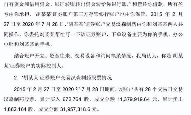在前后近6年时间里,刘正清和刘某某共同操作该账户在28个交易日内买卖了汉森制药股票,累计买入67.28万股,成交金额1137.99万元;累计卖出186.22万股,成交金额3195.73万元。