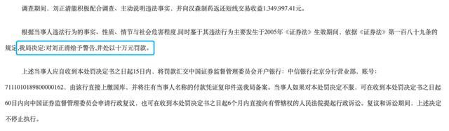 而在证监会的调查过程中,因刘正清曾主动说明违法事实,并向汉森制药返还短线交易收益约135万元。最终,2022年9月,证监会对刘正清的违法行为开出罚单,刘正清被给予警告,并处以十万元罚款。