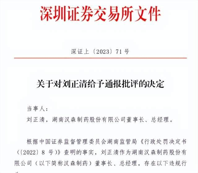 2月8日,汉森制药(002412.SZ)对外表示,因短线交易自家股票,深交所决定对公司董事长刘正清给予通报批评的处分。而就在4个月前,刘正清才刚因此事被证监会罚了10万元。