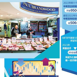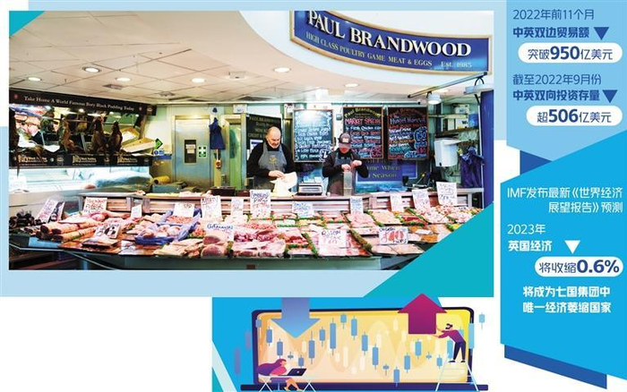 纵观英国“脱欧”后的经济发展历程,可谓一波三折。其“全球英国”战略虽取得一定进展,但重塑其全球贸易与投资版图的努力却远非坦途。在重点方向上,英国的收获均颇为有限,与欧盟达成的是条件并不优厚的自贸协定,与美国的贸易谈判久拖不决,与印度的自贸区谈判也非一帆风顺。2022年前11个月,中英双边贸易额突破950亿美元,截至2022年9月份,中英双向投资存量超过506亿美元,较疫情前增长80亿美元。这些数据充分显示出中英双边合作互补性强、韧性十足,中国仍是促进英国经济增长的重要引擎。但是,近来英国追随美国在高科技领域采取对华“脱钩”政策,英国经济失速势将成为必然。尽管英国政府于2022年8月份制定了发展中国家贸易计划,向发展中国家提供更优厚的市场准入待遇,以推动英国与拥有33亿人口的新兴经济体合作,但远水解不了近渴,IMF预测英国2023年经济持续衰退也在情理之中。IMF预计,2024年英国将成为全球主要工业国中经济增长最慢的国家。英国央行此前也预测,英国GDP将连续两年负增长,将是英国一个世纪以来时间最长的经济衰退。