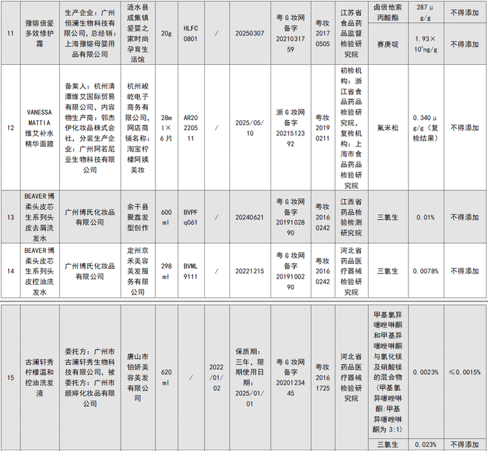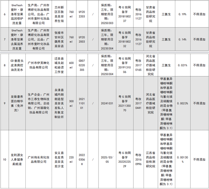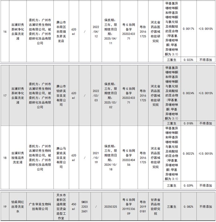 标签标示名称为古澜轩秀柠檬温和控油洗发液等4批次化妆品检出禁用原料的同时,还存在甲基氯异噻唑啉酮和甲基异噻唑啉酮与氯化镁及硝酸镁的混合物(甲基氯异噻唑啉酮:甲基异噻唑啉酮为3:1)检出结果不符合规定的问题。