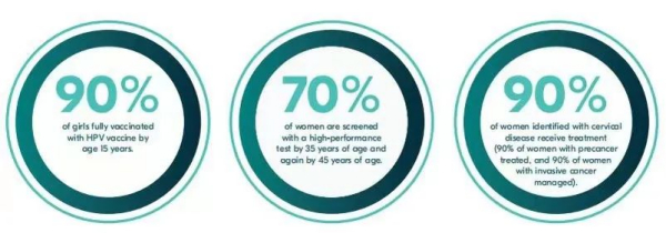 90%确诊为子宫颈疾病的女性得到治疗(90% 癌前病变的女性得到正规治疗,90%浸润性子宫颈癌的女性得到有效管理)。