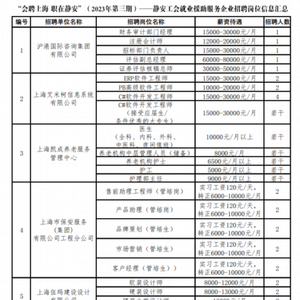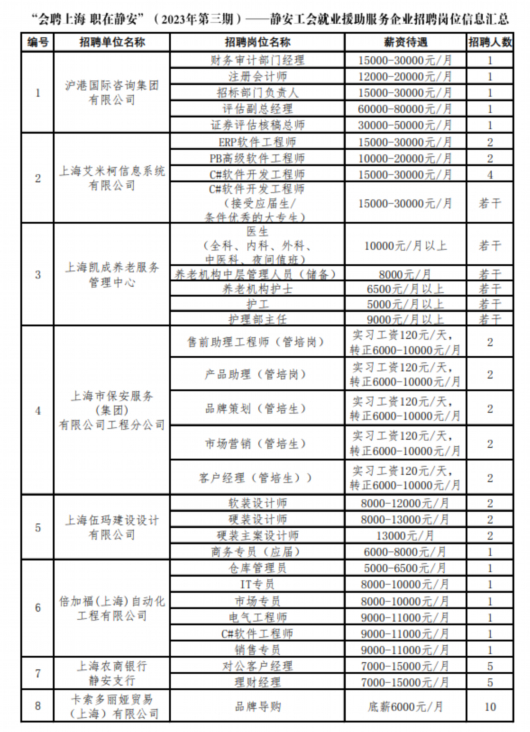 静安区总工会集合8家优质企业提供32个岗位,招聘近70人。