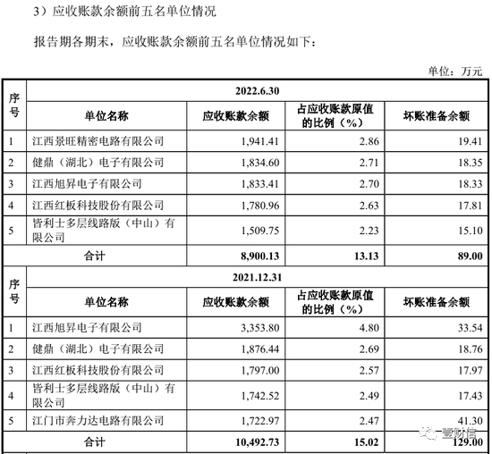 PCB知名上市公司博敏电子主要向江南新材采购铜球等产品,根据其公告,2021年,博敏电子向江南新材采购商品的金额为7,644.06万元,当年末的应付账款金额为2,022.36万元。但江南新材的招股书显示,其与博敏电子的交易额并未排入前五名,并且2021年末的应收账款前五名中,博敏电子也未出现。应收账款余额第一、二名分别是江西旭昇电子有限公司、健鼎(湖北)电子有限公司,金额分别为3,353.80万元、1,876.44万元。若按博敏电子披露的数据,其应该排在江南新材2021年的应收账款第二名,却未出现。上述信披差异不知因何造成。