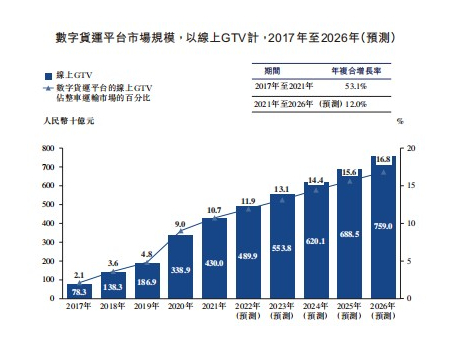 另据灼识咨询的资料,按2021年线上GTV计算,维天运通是我国规模第二大的数字货运平台。当年,该公司的线上GTV约为3800亿元,对应市场份额8.8%。