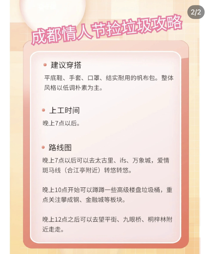 网友甚至出了 《情人节捡垃圾攻略》 ,其中提到OOTD建议:低调朴素。这个攻略可以留着520、七夕,一年机会多多!