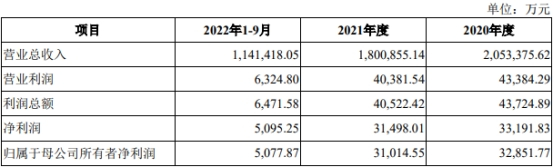 2020年、2021年、2022年1-9月,中建信息的营业收入分别为2,053,375.62万元、1,800,855.14万元、1,141,418.05万元;归属于母公司所有者净利润分别为32,851.77万元、31,014.55万元、5,077.87万元;经营活动产生的现金流量净额分别为-173,020.41万元、109,353.74万元、-108,891.99万元。