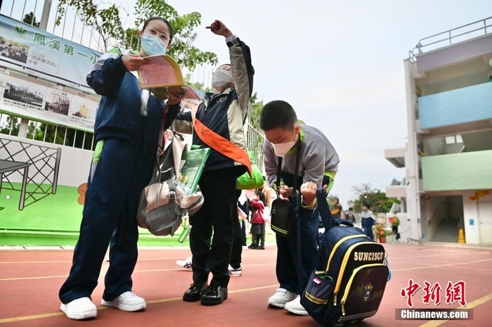 居住于深圳文锦渡口岸附近的深港跨境小学生何其乐就读于香港元朗凤溪第一小学。时隔三年后,他与一众跨境学生重新返回位于香港的学校参加课堂面授。为此,学校特地对教学活动做出了特别安排,让他们尽快适应校园生活。