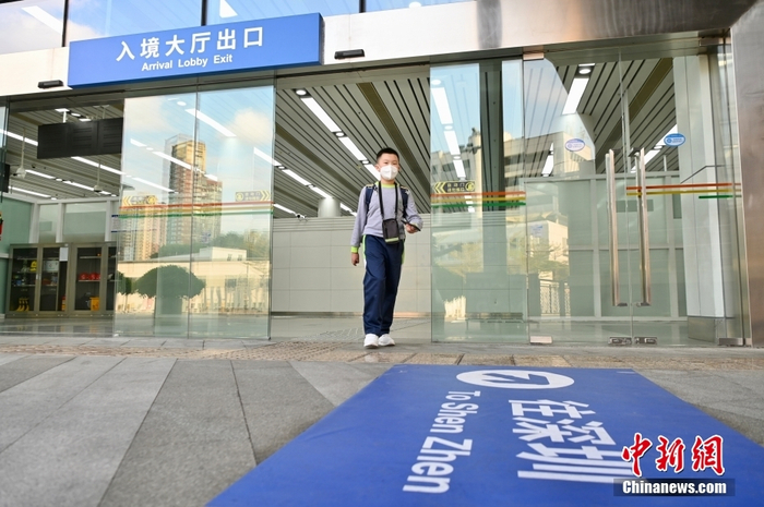 跨境小学生何其乐完成过关手续步出深圳文锦渡口岸,准备返回深圳的家。