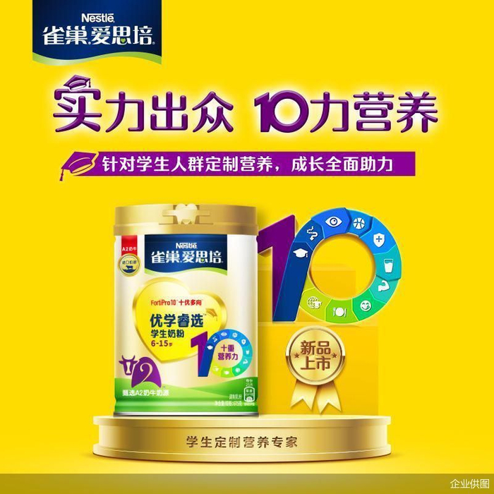 在中国市场深耕20多年的雀巢学生营养再度发力, 2月14日,雀巢学生营养品牌爱思培推出采用A2奶牛奶源的新品优学睿选学生奶粉,并发布《十力营养开启未来潜能探索式学习白皮书》,以科学营养方案助力把握6-15岁学龄儿童关键“蜕变十年”,用全面均衡营养支持儿童及青少年成长,引领6-15岁学生奶粉专业化、精细化升级。