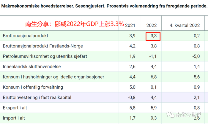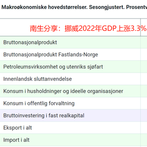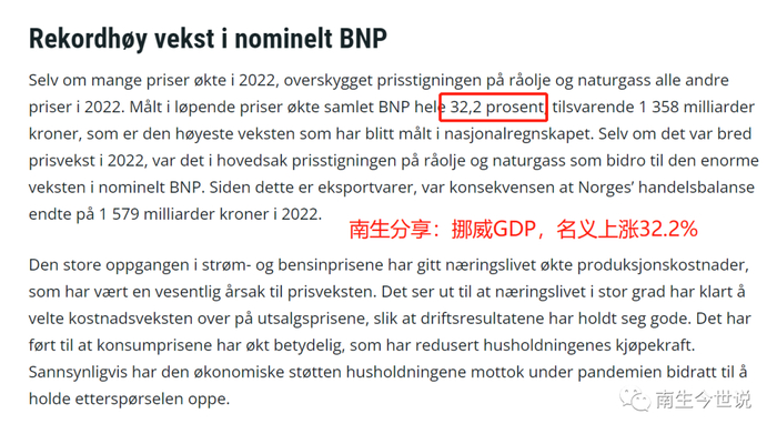 南生多次强调,我们提到的各国经济增长率都是不包括通胀因素的。在往年,不必反复提到它,但2022年的情况特殊嘛,能源价格暴涨,对挪威这样的天然气、石油出口大国来说,是暴利啊。