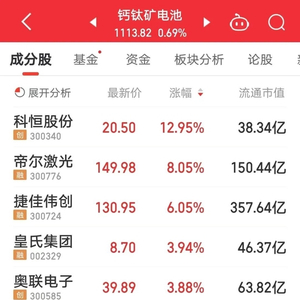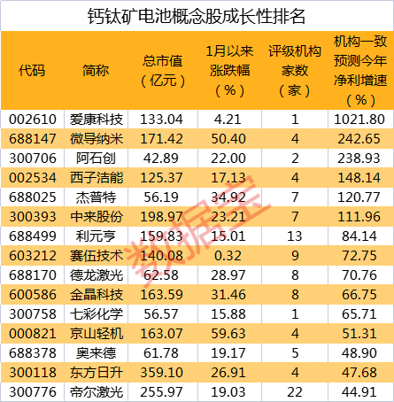 钙钛矿电池效率破纪录,行业加速崛起,稀缺高成长钙钛矿概念股名单来了