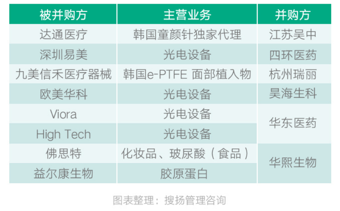 从2022年医美上游厂商资本并购事件上看,并购方绝大多数都是以经营医药业为主的公司,并购的主要目的是丰富自己在医美领域的短板业务线。