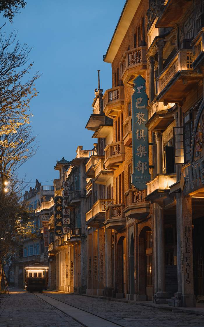 赤坎古镇的夜晚被点亮,灯光和历史的结合让老建筑“活起来”。