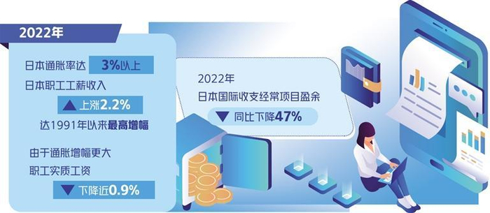 日本经济形势确实难以支撑大幅加薪。自新冠疫情以来,特别是近两年来美西方脱钩断链,导致能源、原材料等价格上涨,输入性通胀冲击日本社会,日本民众叫苦不迭。国际金融市场看空日本经济,日元大幅贬值,更使日本经济雪上加霜。据日本财务省最新披露,2022年日本国际收支的经常项目盈余同比下降47%,仅为11.4432万亿日元,特别是货物贸易赤字15.78万亿日元,服务贸易赤字5.61万亿日元,均为近10年来所罕见。能源、原材料等价格高企,日元贬值是主要原因。日本国内不仅成品油、电力、天然气、食品等价格普遍上涨,连运输服务业等行业都普遍开始涨价。大和运输、佐川急便等宣布4月1日开始涨价10%。去年以来日本政府为应对日元贬值和进口能源价格上涨而向家庭提供的煤气、电力补助将在今年下半年逐步减少。有专家分析称,近两年增加的输入性成本仅有36%转移给消费者,大部分压力由企业承担,致使企业难以承受,今后涨价是必然趋势。另据帝国数据公司统计,今年计划涨价的食品、消费品等超过12000种。同时,该研究中心预测日本GDP增长率2022年度为1.61%,2023年度仅为1.06%。国际货币基金组织2月初发布的最新预测显示,2023年日本GDP增长1.8%,2024年则为0.9%,经济形势难以支撑大幅加薪。