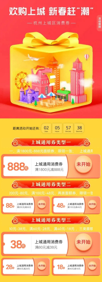 2月14日19:30起,上城消费券(第三期)上线。