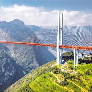 飞架于北盘江上的杭瑞高速北盘江大桥,竣工通车即摘得“世界第一高桥”桂冠。彭运动表示:“大桥的修建,为山区修建大跨径桥梁提供了除悬索桥之外一个新的解决方案。” (记者 李海钦)