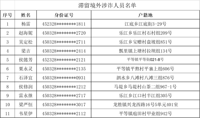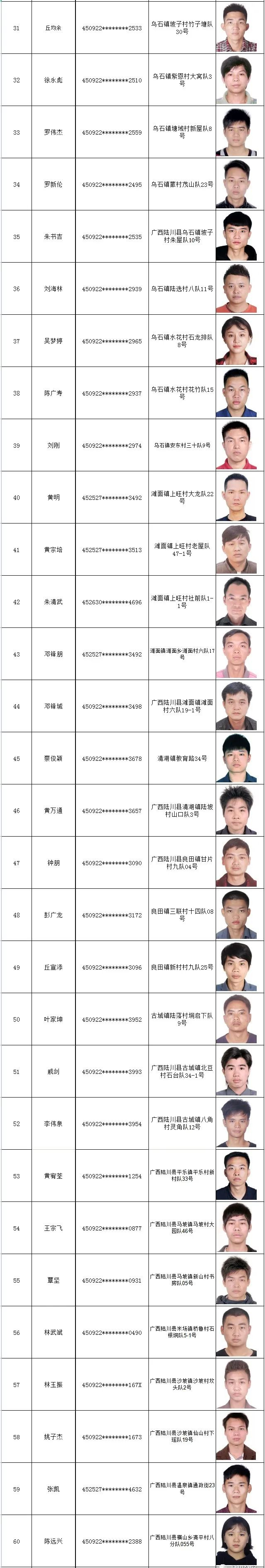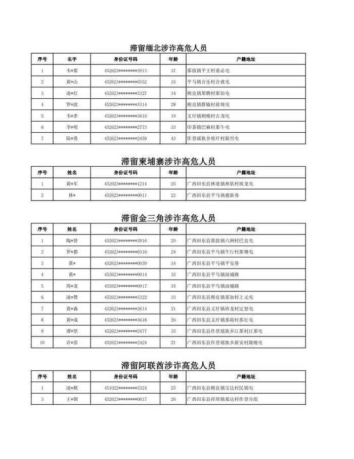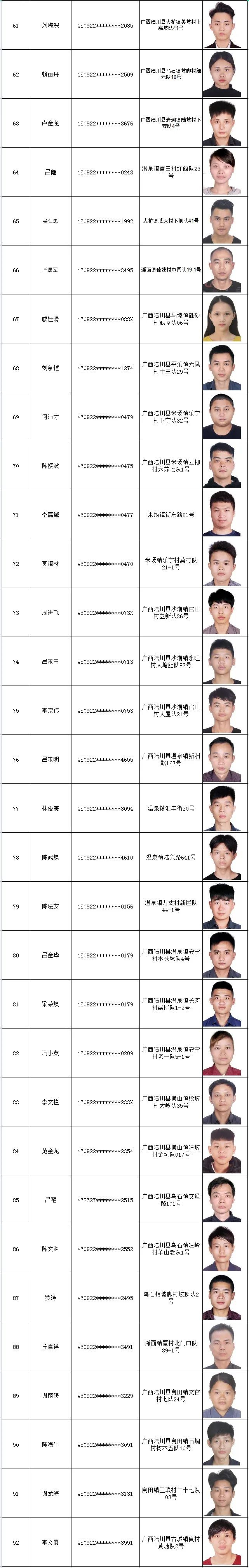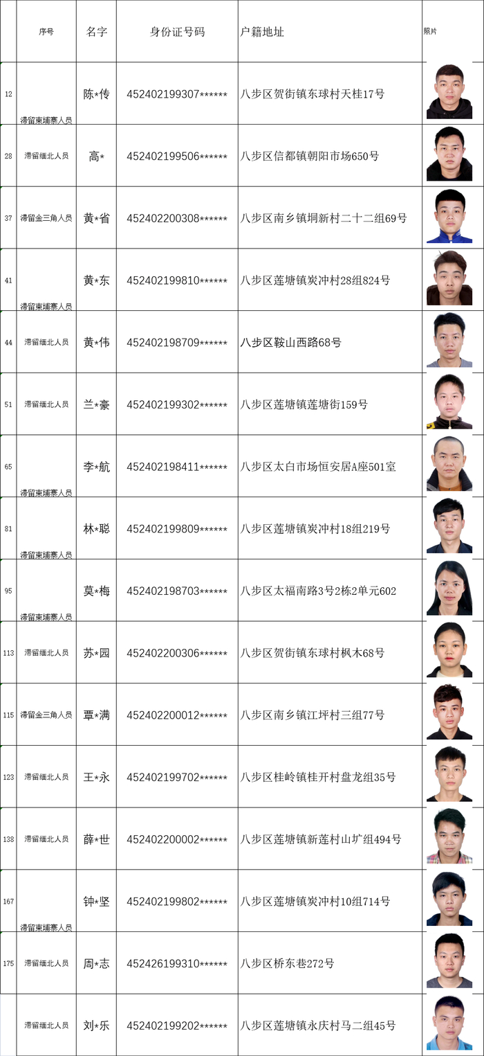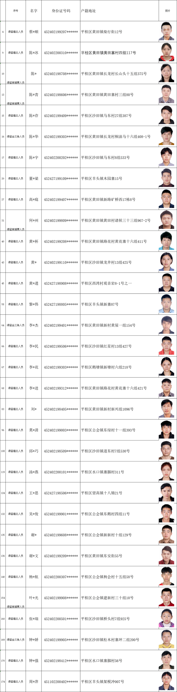 贺州市公安局平桂分局非法滞留金三角、柬埔寨、阿联酋、缅北地区人员基本信息