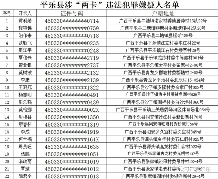 全州县涉“两卡”违法犯罪嫌疑人员名单