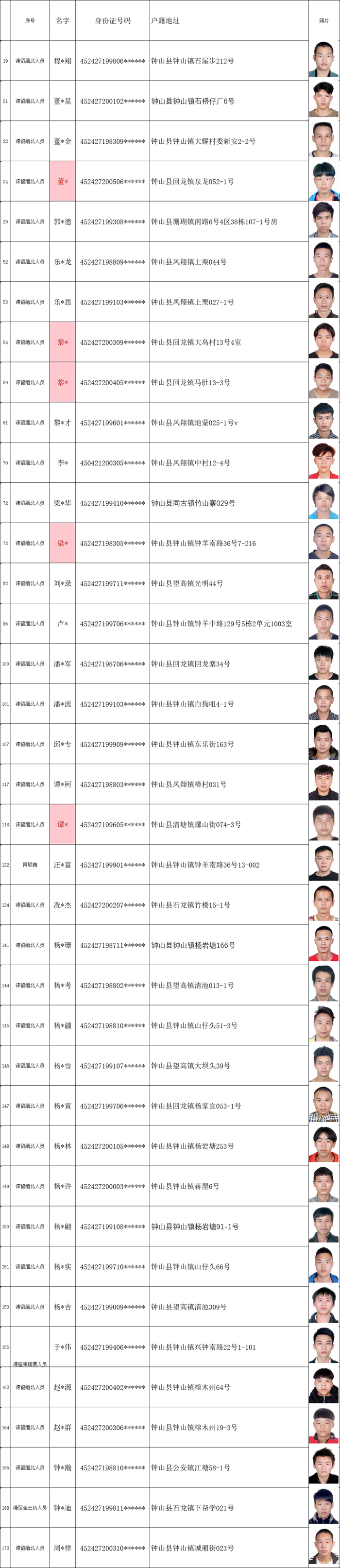 钟山县公安局非法滞留金三角、柬埔寨、阿联酋、缅北地区人员基本信息