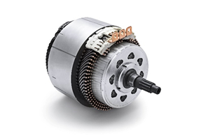 这些成果出自驱动电机的定子、转子和整体设计所采用的创新技术。在定子中,高功率密度和高效率是通过由扁线导体组成的发夹式绕组实现的。与传统的圆线电机绕组解决方案相比,槽满率更高(大于80%),在电磁和热性能方面更具优势。在转子中,优化了磁铁和转子几何形状,斜极转子可减少噪音、振动和齿槽转矩;磁钢分片可减少功率损耗。此外,另一项创新技术降低了由轴电流引起的风险,该风险来自于电机轴和汽车底盘之间的电位差,可能导致电流循环,从而对轴承造成潜在的电腐蚀风险。