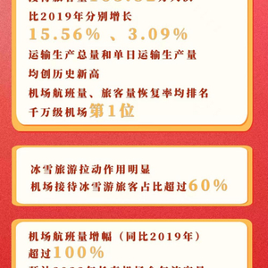最新统计数据显示,吉林机场集团春运期间所辖各机场运输生产呈现出强劲恢复态势,航班量和旅客量都超过2019年同期水平。其中,长春机场共完成航班量12974架次,同比2019年增长15.56%;旅客量165.82万人次,同比2019年增长3.09%。