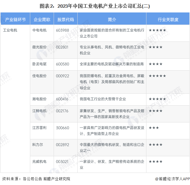 行业主要上市公司:卧龙电驱(600580)、湘电股份(600416)、江特电机(002176)、佳电股份(000922)等。