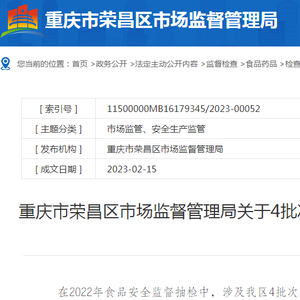 重庆市荣昌区市场监督管理局发布关于4批次不合格食品风险控制情况的通告(2023年第2号)
