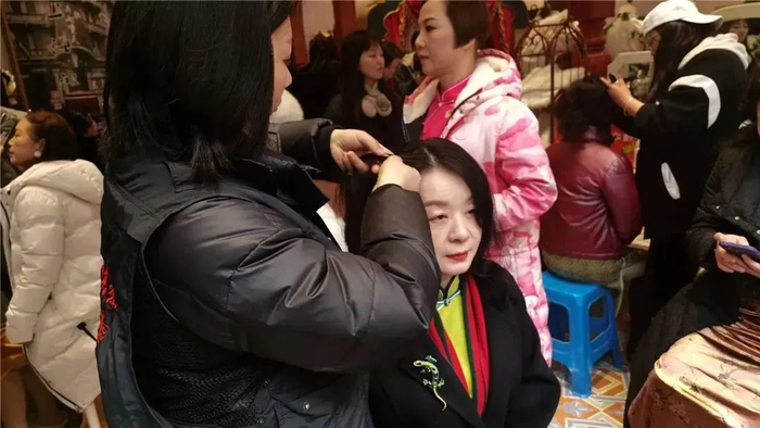 这群来自上海的阿姨把爱美刻在骨子里,平时的打扮都非常时尚。她们有人剪了超短的“波波头”,有人则烫着俏皮的“玉米烫”。但是为了角色的塑造,这群虽然业余却十分敬业的“演员”,宁愿牺牲掉自己的时髦,起个大早来到片场换发型。