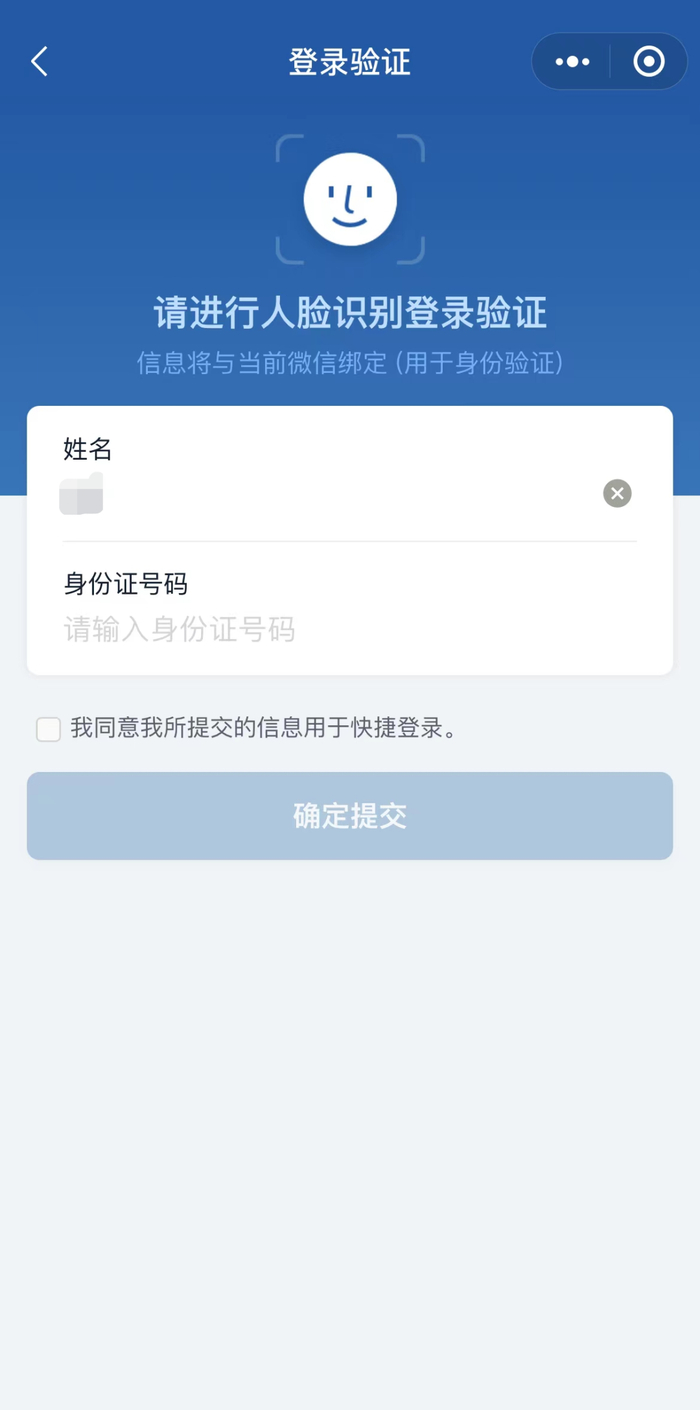 3.核对备案信息,填写身份证号,提交后进行人脸识别登录。