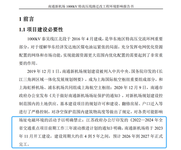 近日,江苏环保公众网对南通新机场1000kV特高压线路迁改工程进行的环评公示,也印证了这一点。