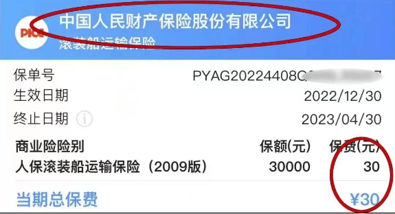 30元买的中国人民财产保险股份有限公司“滚装船运输保险”无实用价值