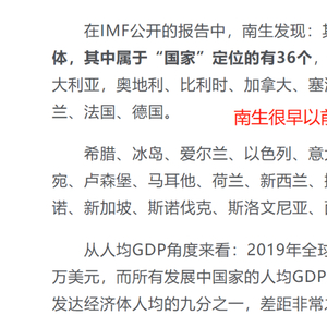 南生曾引用IMF发布的报告指出:国际货币基金组织认定的发达经济体共有39个。其中,36个国家,以及我国的港澳台地区。