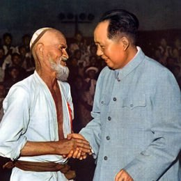 库尔班·吐鲁木大叔与毛主席握手的照片