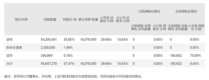 根据公司2月15日公布的最新持股情况来看,梁伟及其一致行动人共持有上市公司37.47%的股份,其中梁伟本人持有公司35.85%的股份。