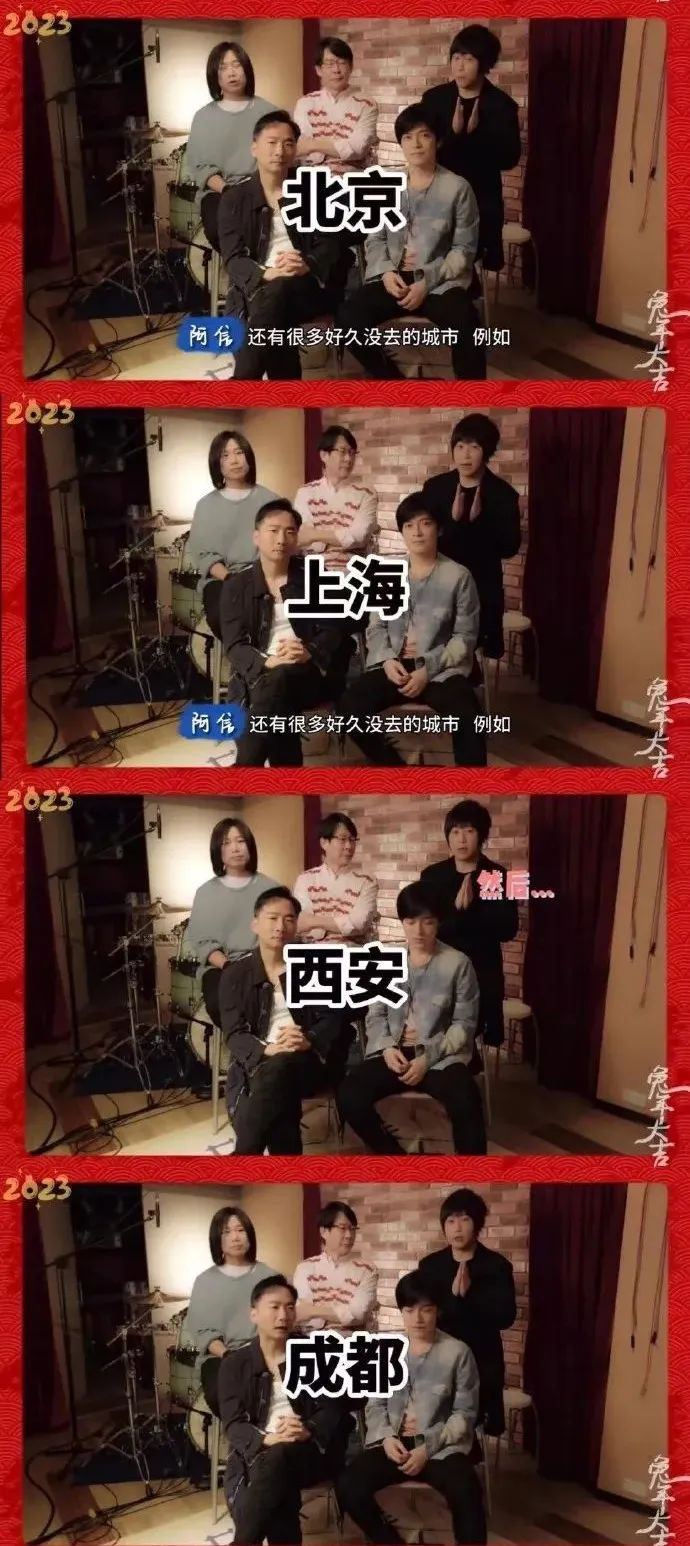 对此,有媒体特别去扒拉了五月天的新春拜年视频,里面明确提到的内地巡演城市有:北京、上海、西安、成都。