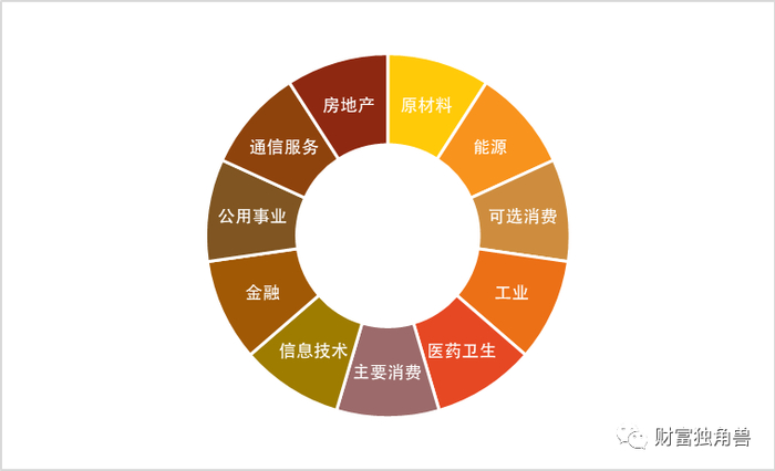 行业指数的成份股均归属于某个特定行业。不同机构的行业分类标准千差万别,导致行业指数也林林总总,不胜枚举。例如,申万一级行业指数有31个,而按中证指数公司的行业分类标准,中证一级行业指数共分为了如下11个: