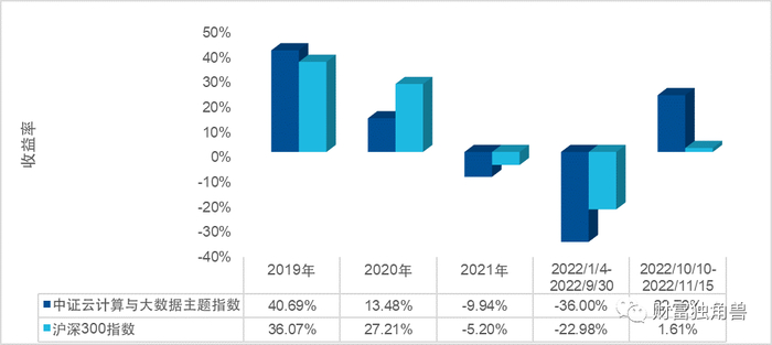 图:中证云计算与大数据主题指数与沪深300指数收益率对比