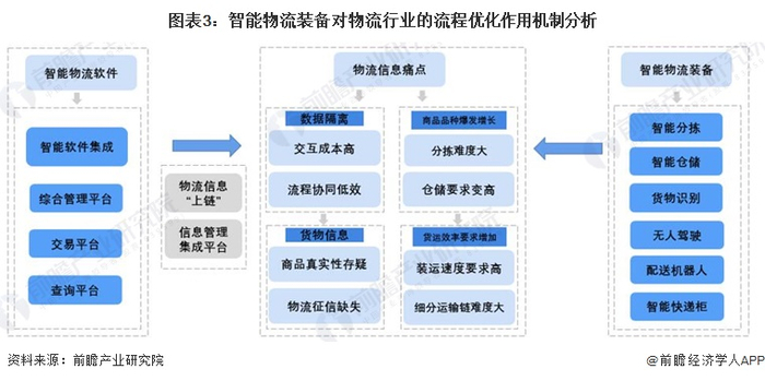 另外,随着全球工业4.0的发展,工业界对自动化的需求持续增长,彻底改变了物流设备的采用。随着机器人技术、无线技术、无人驾驶汽车等技术的出现,智能物流市场在过去几年中取得了显着增长。因此智能化发展成为全球物流装备行业的主流需求特征,智能物流装备对传统物流行业优化作用机制示意图如下: