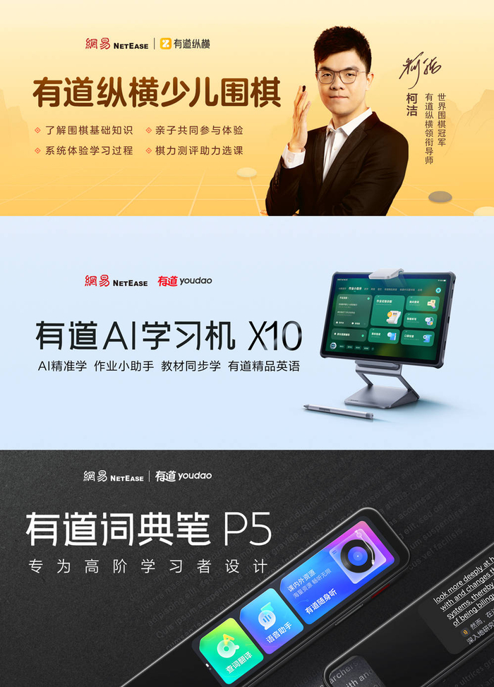 基于相同的数字技术基础和相通的教育理念,双方甄选了有道纵横围棋、有道 AI 学习机和有道词典笔作为合作对象,覆盖了多个线下教育的学习场景。有道纵横围棋降低了围棋学习门槛,帮助孩子快速掌握围棋规则和技巧,同时借助自研 AI 技术,大大提升围棋学习的乐趣。有道 AI 学习机作为一款综合智能学习硬件,借助有道深厚的技术积淀和专业教研团队,为用户提供练习方法、学习工具以及丰富内容资源。有道词典笔以自主研发的神经网络翻译和光学字符识别等业内领先的 AI 技术为依托,涵盖了高效准确查词、多语种互译、互动点读等丰富场景需求,是 AI 技术在学习领域应用落地的优秀智能硬件产品。