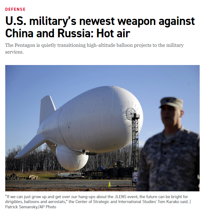2022年7月,美国“政客”网(Politico)曾发布文章称,美国正在制定一项新计划,拟用“气球”作为对付中俄的新武器。